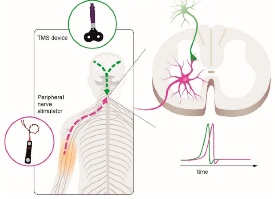 磁電成對關聯刺激 (paired associative stimulation, PAS),是一種基于脈沖時序依賴可塑性理論,將低頻外周神經電刺激與中樞經顱磁刺激配對,誘導突觸可塑性變化的無創腦刺激技術,可應用于康復醫學、神經內科及神經精神疾病相關研究。