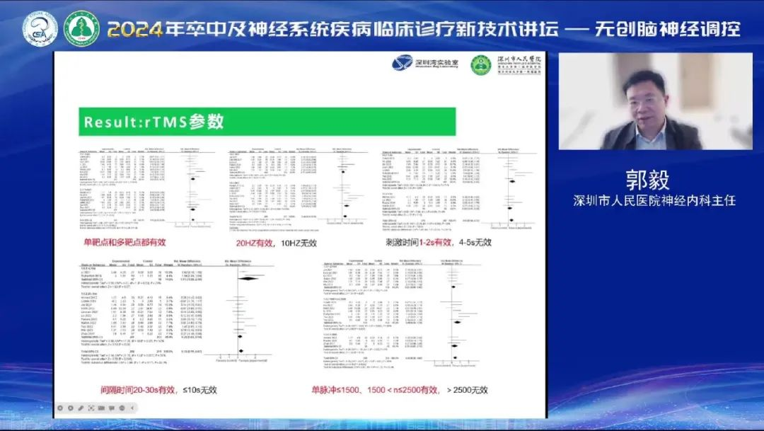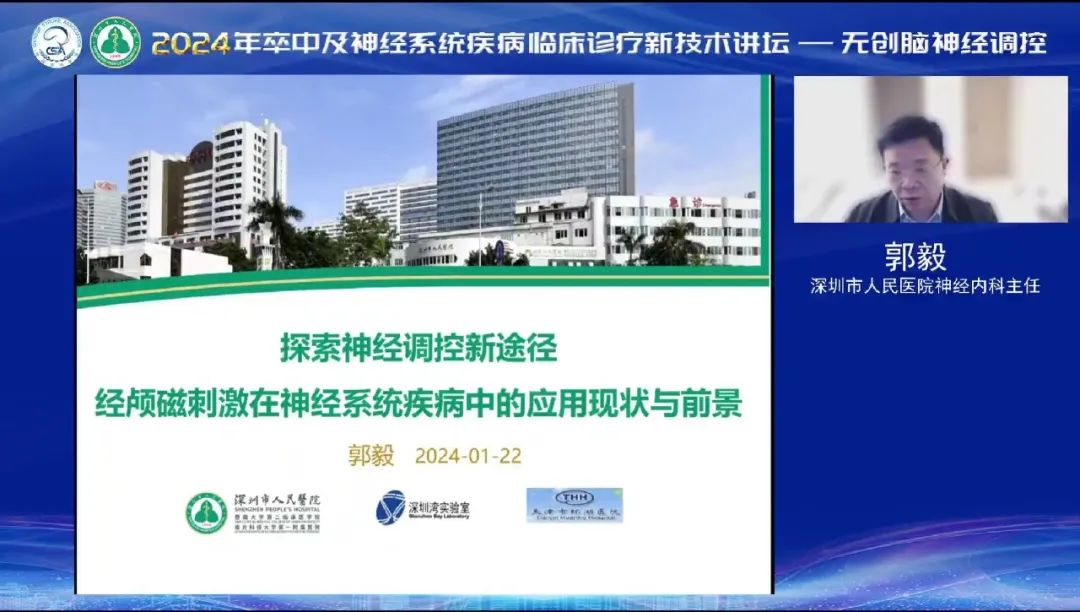 2024年1月22日晚20點,中國卒中學會神經調控分會特聯合深圳市人民醫院及“腦客中國”學術直播平臺,線上舉辦的公益講壇——2024年卒中及神經系統疾病臨床診療新技術講壇-無創腦神經調控,深圳市人民醫院神經內科郭毅主任作為第1位講者為大家帶來主題報告。