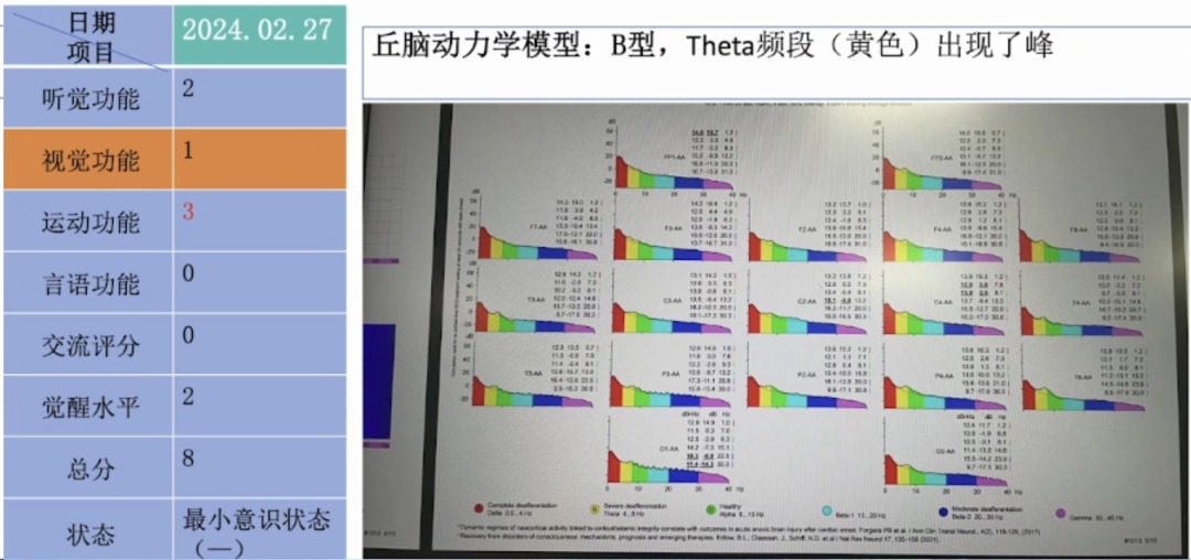 CRS-R評分(2024-02-09):1分;昏迷。