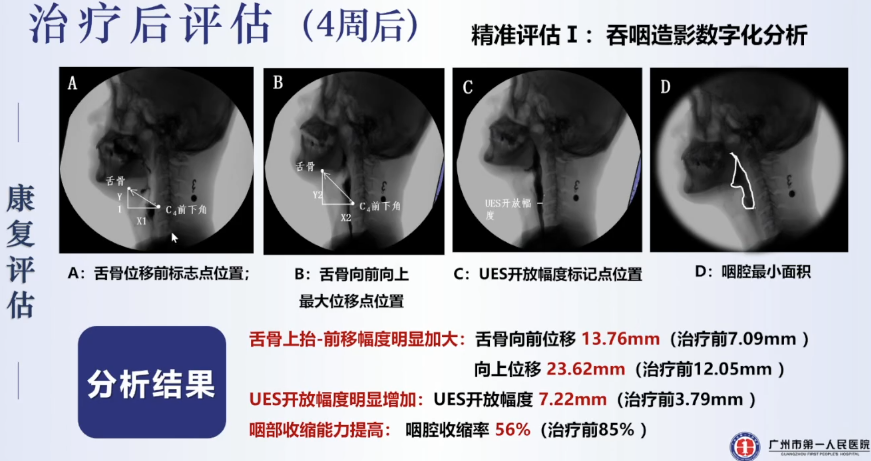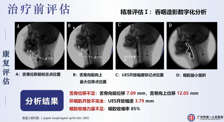 李醫生團隊通過吞咽造影數字化分析、高分辨率咽腔壓力測定、咽內肌群MEP地形圖這三項技術對患者進行了精準化的康復評估: