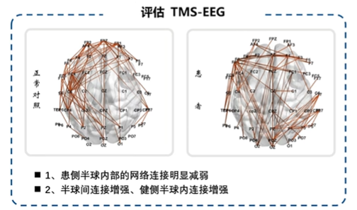 TMS-EEG結果提示患者半球間以及健側半球內的連接增強代償患側功能受損,見下圖。