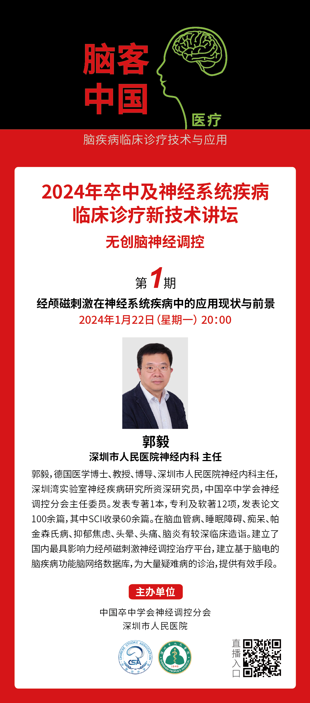 為響應(yīng)“中國(guó)腦計(jì)劃”的實(shí)施,進(jìn)一步推動(dòng)以神經(jīng)調(diào)控技術(shù)為核心的精準(zhǔn)診療技術(shù)在卒中及神經(jīng)系統(tǒng)疾病的普及、交流和臨床應(yīng)用,惠及更多的腦疾病患者,中國(guó)卒中學(xué)會(huì)神經(jīng)調(diào)控分會(huì)特聯(lián)合深圳市人民醫(yī)院及“腦客中國(guó)”學(xué)術(shù)直播平臺(tái),線上舉辦公益新技術(shù)講壇。講壇將邀請(qǐng)國(guó)內(nèi)外知名專家立足腦卒中后認(rèn)知障礙、阿爾茨海默病、帕金森病、癲癇等相關(guān)腦疾病,分享神經(jīng)調(diào)控技術(shù)、神經(jīng)電生理技術(shù)、神經(jīng)影像技術(shù)的前沿臨床科研成果和精彩臨床案例;并期待與全國(guó)的專家學(xué)者進(jìn)行知識(shí)經(jīng)驗(yàn)的交流碰撞,共促合作,共建腦疾病的定量化評(píng)價(jià)指標(biāo)體系,提高疾病診斷系統(tǒng)的精準(zhǔn)度,開發(fā)個(gè)體化精準(zhǔn)化神經(jīng)調(diào)控治療策略。歡迎全國(guó)各相關(guān)學(xué)術(shù)人員參與及交流!