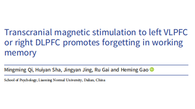 遼寧師范大學的高賀明教授團隊再發高分SCI!該團隊在Psychological Medicine(IF=5.5)發表了名為 Transcranial magnetic stimulation to left VLPFC or right DLPFC promotes forgetting in working memory 的文章..