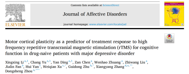 A study published in May 2023 in the Journal of Affective Disorders(IF=6.6) by team of Zhou Dongsheng, director of Ningbo Kangning Hospital (Affiliated Mental Health Center of Ningbo University), suggested that motor cortical plasticity could be used as a potential biomarker to predict cognitive improvement in MDD patients.