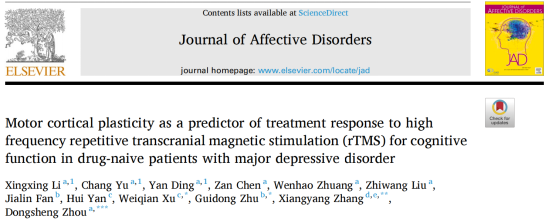 A paper titled “Motor cortical plasticity as a predictor of treatment response to high frequency repetitive transcranial magnetic stimulation (rTMS) for cognitive function in drug-naive patients with major depressive disorder” was published in the Journal of Affective Disorders 2023(Impact factor=6.6).